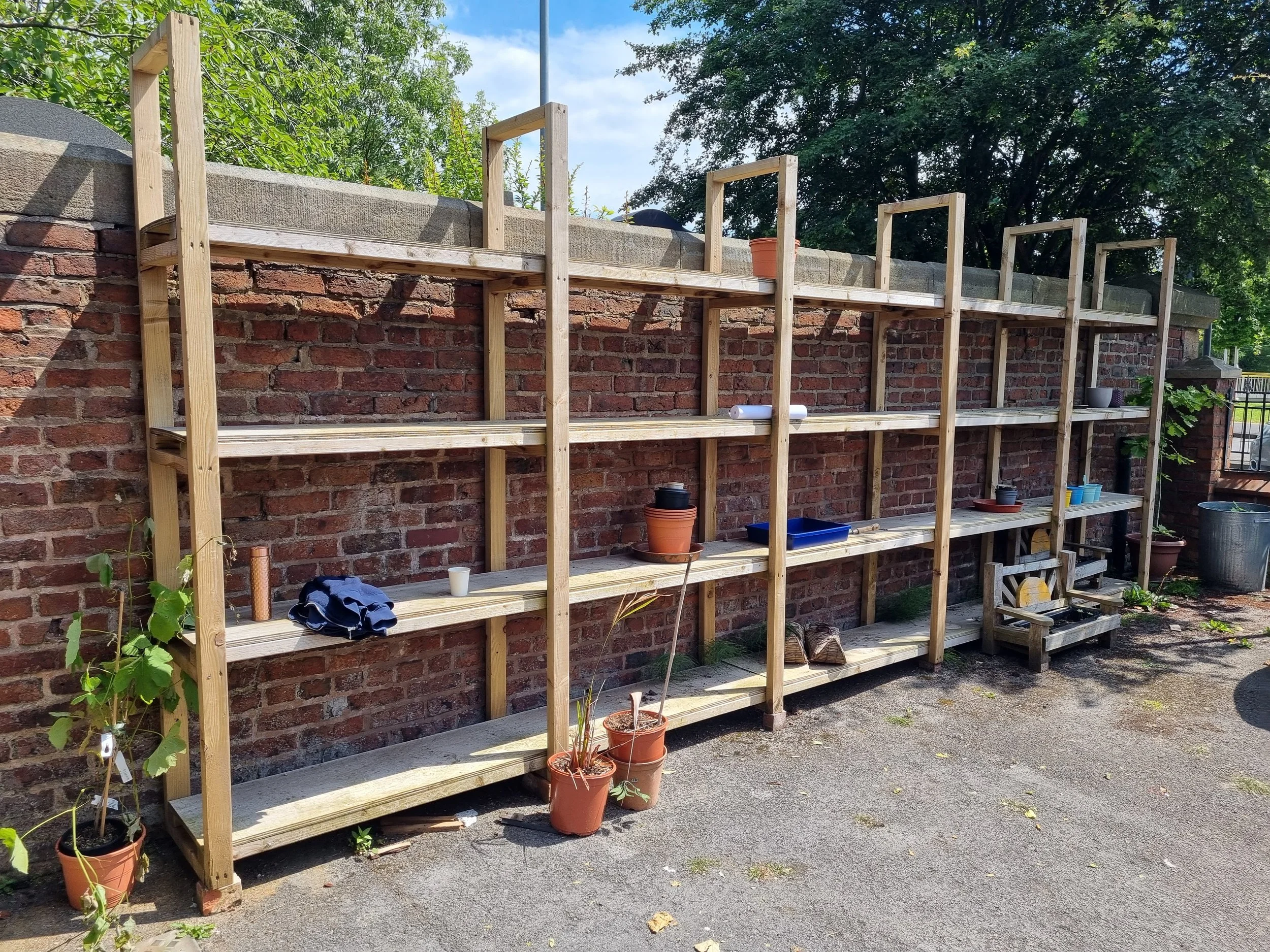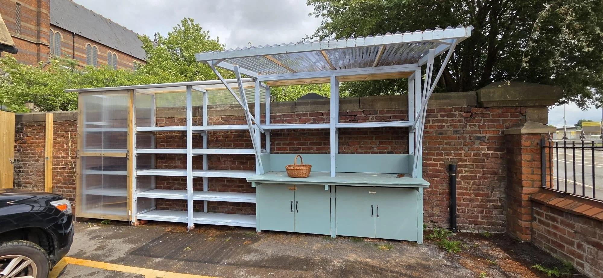 Utilising a previously constructed growing structure, the community participants worked towards converting this into a functional food project. The resulting design included a community seedling bank to the left hand side to produce seedlings for the local community, a high-level green house section, and to the right hand side a market stall that also acted as a potting shed.